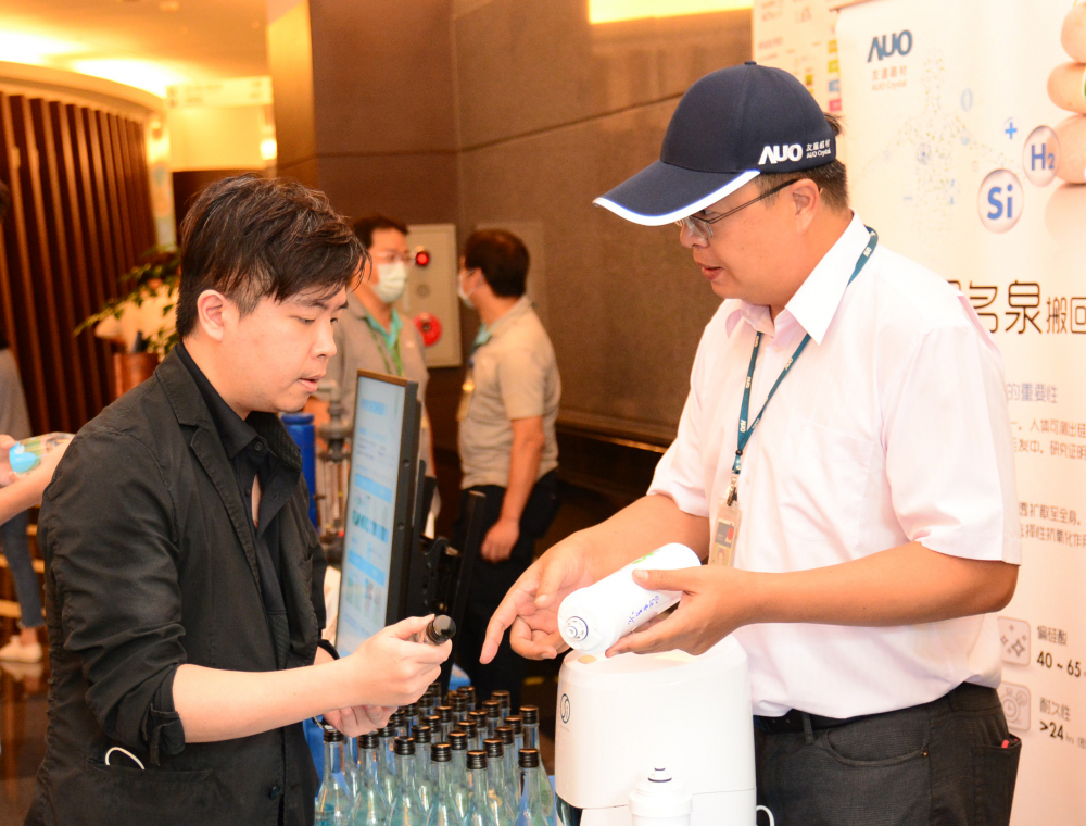 友達積極創造價值鏈循環經濟商機,也偕同集團企業共同戮力於循環經濟成果。今天現場亦邀請集團子公司友達晶材,展示將製程中產出的奈米矽粉,透過創新的純化技術合成的新型液態矽肥,除了提供植物必要營養元素,更能有效抑制植物病蟲害、減少農藥使用,提高農產品產銷效益;現場亦展示由矽元素及氫分子組成的獨特造水專利技術,首創將純矽活化製成矽礦機能濾芯,結合奈米技術,產生含矽富氫、純淨天然的機能水。同樣為友達子公司的宇沛永續科技,也展示由友達自主研發的製程用水全回收技術及智能化控制技術,將製程用水量濃縮減量,再透過高效率蒸發設備達到零排放,以達到資源有效利用,為永續水資源發展盡份心力,為企業成功跨足農業、工業及生活領域的具體案例。